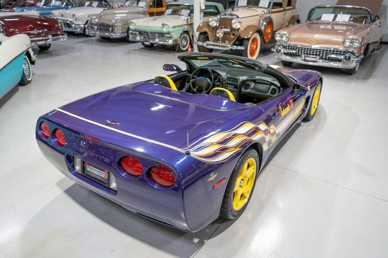 This 1998 Chevrolet Corvette Pace Car Edition is a nicely preserved lower mileage example sporting the iconic 1998 Indianapolis 500 Livery and is ready to be your next summer cruiser! When Chevrolet debuted its Corvette concept car at the New York City Motorama in the early 1950s, few would have expected that not only would the GM marque continue to produce the car for the next 75 years, but also that it would garner a reputation as being America's performance car. See in the early 1950s, Chevys were economical people movers and weren't yet thought of as offering stellar performance on the racetrack. As Corvette production moved into the middle of the 1950s, Chevrolet added a V8 engine along with a manual transmission option and the Corvette would start building its performance-oriented legacy and started to establish itself as a true competitor to the European sports cars that it was originally meant to compete against. Into the 1960s and 70s, Chevrolet had sold thousands of its wildly popular, performance-oriented Corvette but for whatever reason, it never served as the Pace Car at the Brickyard for its famous Memorial Day race. That all changed in 1978 when the Chevrolet Corvette was chosen as the Official Indianapolis 500 Pace Car and to commemorate that accomplishment, the Chevy even sold a limited edition Pace Car Replica sporting the iconic black and silver Indy 500 livery. In 1986, the Corvette was once again selected to pace the racers in Indianapolis and, interestingly, the actual '86 Corvette Pace Car was the first street legal Indy 500 Pace Car since the 1978 Corvette that paced the 62nd 500 Mile International Sweepstakes. The Corvette was chosen as the Indy 500 Pace Car yet again in 1995 and it was driven by famed Indy 500 racer Parnelli Jones. The fourth Corvette model to serve as the Indianapolis 500 was the 1998 model, clad in Pace Car Purple with special Indy 500 decals. To commemorate the special C5 Pace Car, Chevrolet built an additional 1,163 Indy 500 Pace Car Edition cars in 1998 and they were available for purchase at through Chevrolet's dealership network. These Pace Car Edition Corvettes were offered with either a 4 Speed Overdrive Automatic transmission or a 6 speed manual. In total, only 616 were built with 4 Speed OD Automatic transmissions, which makes this particular Corvette a rare car that just about anybody can drive. This 1998 Corvette is believed to have spent the majority of its life down south and comes to us from a southern-based collector who took great care of the car. Powering this '98 Pace Car Corvette is a 5.7 Liter LS1 V8 fed by electronic fuel injection that together were said to have created 345 horsepower when new. The 5.7L LS1 is backed by a 4 speed automatic transmission with overdrive which makes this collectible Corvette an easy car for just about anybody to take for a spin around the block. Exhaust exits the LS1 V8 via a dual exhaust setup that gives this C5 Pace Car its iconic Corvette sound out the rear. Power is sent from the 5.7 Liter V8 to the rear wheels through a limited slip differential so that you can be sure that you'll be able to keep the rubber to pavement. Since this Corvette is a late model collectible, it comes loaded with tons of creature comforts. Squeezing into a tight parking space is a total breeze since this 1998 'Vette comes equipped with power steering. Steering is further assisted with the "Magnasteer" speed sensitive rack and pinion steering rack that makes it easier to take a tight curve at higher speeds. With power disc anti-lock brakes in all four corners, bringing this Corvette to a complete stop is also easy especially with all that horsepower under the hood. You'll be able to stay cool on the hottest summer days and warm on cool fall or spring nights since this '98 Corvette is equipped with dual zone air conditioning and heat. The black cloth convertible top is manually operated, easily by a single person, and it is in wonderful condition. Riding on a set of yellow painted cast aluminum wheels with 245/45ZR17 radial tires up front and 275/40ZR18 radials in the rear this Pace Car replica has an eye-catching look and fantastic ride cruising down the road. The exterior has been finished in Indianapolis 500 Livery consisting of Pace Car Purple basecoat/clearcoat paint and the special Indy 500 decals. The interior of this 1998 Chevrolet Corvette Pace Car Edition is absolutely stunning! The bucket seats have been correctly and recently reupholstered in gorgeous two-tone Black and Yellow leather and both are 6-way power adjustable seats. The black upholstered door panels, center console, carpeting, leather wrapped dash, and leather wrapped steering wheel are all in wonderful condition as well and appear to remain in the stock configuration. The instrument cluster is equipped with a 200 MPH Speedometer, 7,000 RPM tachometer, oil pressure gauge, temperature gauge, volt gauge, and fuel gauge, along with a display for the Driver Information Center (D. I.C.). The interior is also loaded with numerous desirable creature comforts including power windows, memory power seats, adjustable mirrors, and power door locks. With an AM/FM/CD entertainment system, you'll be able to listen to all of your tunes while cruising down the road. Whether you're buying your very first collector car or you're adding to an existing collection of classic Corvettes, this 1998 Chevrolet Corvette Pace Car Edition would make an excellent addition. Give Ellingson's a call today at 763-428-7337!