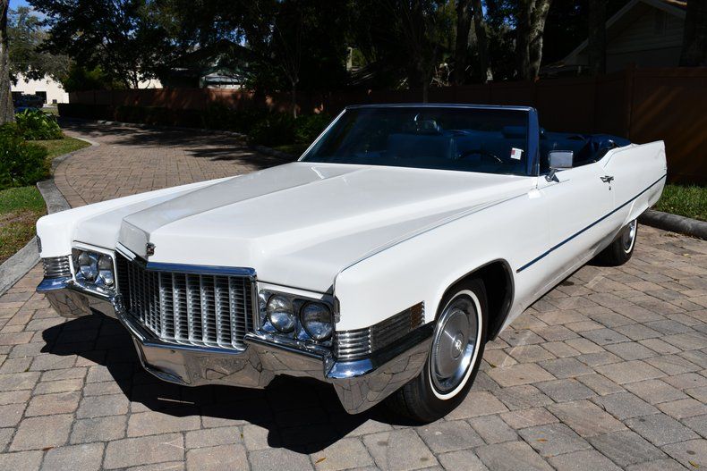 Beautiful 1970 Cadillac Deville Convertible :: Powered by 472ci V8 Engine, Automatic Transmission, White Exterior, Power Blue Convertible Top, Blue Boot Cover, Blue Leather Interior, Air Conditioning, Power Steering, Power Brakes, Power Windows, Power Locks, Power Seat, Actual Miles, White Wall Tires, Fender Skirts, Runs And Drives Simply Amazing!! Call Monica for more information 863-899-1565 or email sales1@primoclassicsint.com