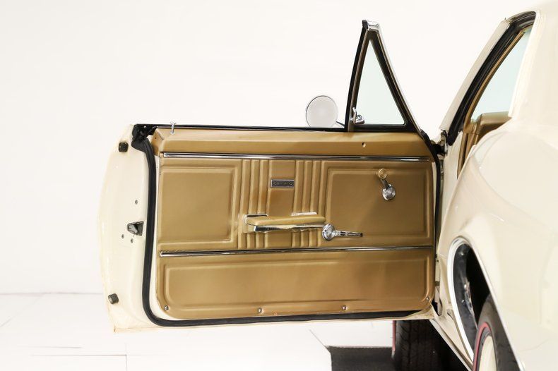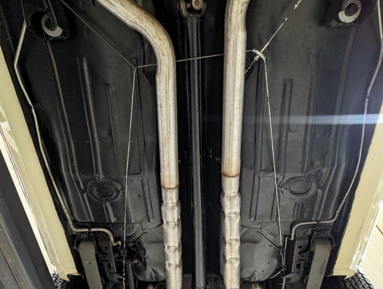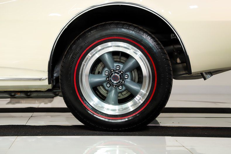 EXTERIOR: The body is in excellent shape: rust free, clean, and straight. Repainted its original Capri Cream color. It's very smooth and glossy. Painted on SS nose stripe and SS blacked out rear panel. It features front and rear spoilers. The chrome, trim, weatherstrips and glass are in great shape. Brand new Vintage style Torque Thrust wheels and a set of BFG radial red line tires.