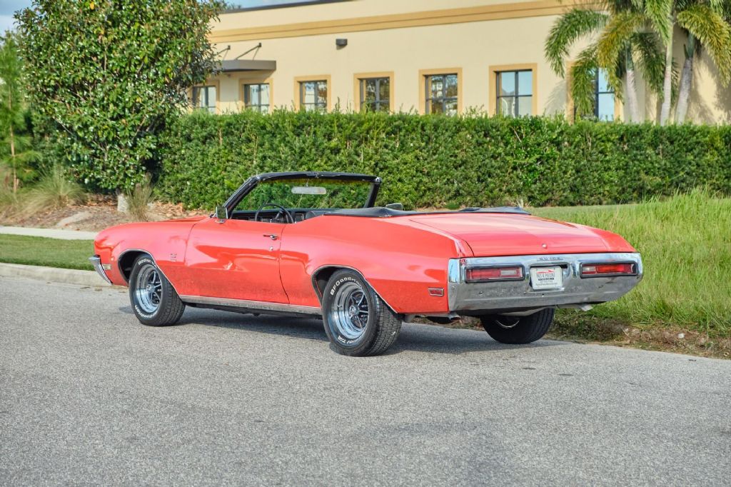 1971 Buick GS Gran Sport Convertible, Matching Numbers 350 Cubic Inch V8 Engine with Cold Air Induction System, Automatic Transmission, Original Documented Miles 118,652, Car came from the same Florida owner with clear Florida Title since 1986 when the car had 90,500 Original Miles. Options Include Air Conditioning (not currently cold), Power Windows, Power Steering, Power Front Disc Brakes, Factory Gauges, Bench Seat, Dual Sport Mirrors and Chrome Buick Rallye Wheels with BF Goodrich White Letter Radial T/A Tires. Original Interior, Older Paint Job in Orange with Black Vinyl Interior and Black Power Convertible Tops. This classic muscle car runs great and can be driven and enjoyed! While we do our best to provide the highest quality muscle cars with an honest and reliable description and realize the importance of transparency when selling vehicles. That being said, we have not built, modified, changed or personally owned this vehicle. Whether this vehicle is consigned or owned by Past & Present Motor Cars we do not know the vehicles complete history since new. We want to be clear and try to answer any questions our customers might have prior to purchasing. Additionally, we not only welcome but we encourage 3rd party independent inspections. Please inquire prior to purchase to make sure the advertised vehicle has not already been sold. We list our vehicles on multiple websites and a vehicle can sell at any time. If a customer chooses to purchase sight unseen (many of our customers choose this option) the customer accepts the vehicle AS IS and WHERE IS and understands we cannot address concerns after purchase. For this reason, it's important all concerns are addressed prior to purchase. We make every effort to present accurate and reliable information, but use of this information is voluntary, and should only be deemed reliable after an independent review of its accuracy, completeness, and timeliness. It is the sole responsibility of the customer to verify the existence of options, accessories and the vehicle condition before time of sale. Financing is Available with low rates and Vehicle Shipping is available from our Showroom to your Garage. A Classic Car Warranty is Available for Purchase from a 3rd Party. Please speak to our Sales Associate or Company Representative for more information. Our team is working and available anytime by Phone or Text for your convenience at 407-559-7759. Thank you for your interest!