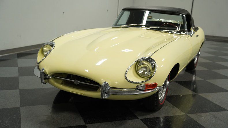 This 1968 Jaguar E-Type Series 1.5 Roadster is truly a masterpiece of engineering and style. Clad in its captivating Pale Primrose hue dresses the sleek E-Type body like a fine-tailored suit. Enhanced by the elegance of its black leather convertible top and the gleam of its 15" wire wheels. The car's design, accentuated by thin wraparound bumpers and a functional yet stylish luggage rack, conjures images of scenic drives through the English countryside, with the wind playfully tousling your hair as you glide along the road, the sun dancing off the polished wheel spokes.