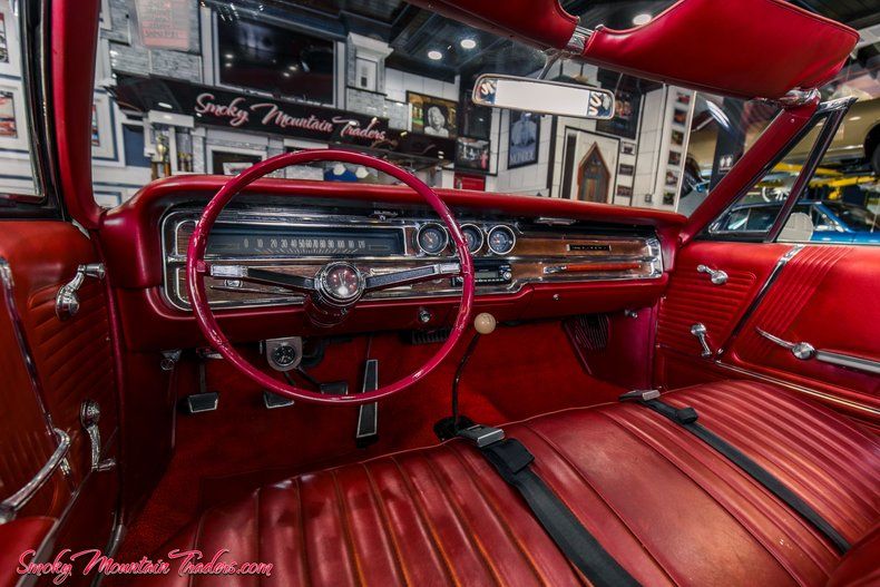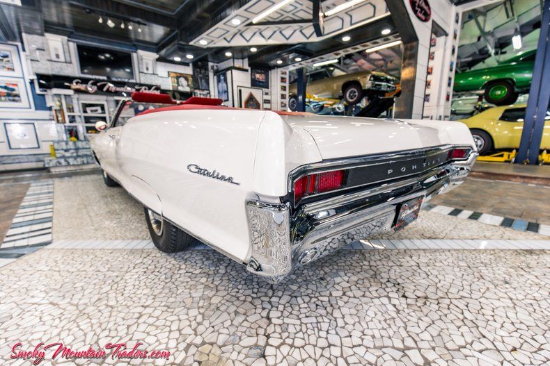 Here we have a 1965 Pontiac Catalina Convertible for sale. This is a very special classic as it features the 389 Big Block V8 Engine and the drop-top option. It has undergone a thorough restoration that has resulted in a beautiful vehicle that's ready to cruise and enjoy. Don't miss your chance to own this Big Block Pontiac. In the paragraphs to follow we will give a brief description of the exterior, interior, and driveline of this Pontiac but first, we would like to tell you a little about us. Smoky Mountain Traders is a classic car dealer in east Tennessee. We are family-owned, and operated, and we own our entire inventory, no consignments, and only deal in muscle cars and vintage autos. You can always count on us to have 70 to 80 cars. We pride ourselves in buying the highest quality classics and selling them to you at a price that no other dealer in the country can compete with. For more information, pictures, or questions, call our office at (865)988-8088 or visit our SmokyMountainTraders website. We will start with the exterior of this Catalina. We can see that the fit of all the panels is great as both doors, hood, and trunk open and close with ease. The gaps are even and symmetrical, and down the sides, the body lines flow seamlessly from front to back. The body is showcased by the Cameo Ivory Paint which is the factory option for it. Countless hours have been spent wet sanding, buffing, and polishing it to a stunning finish that's as slick as a ribbon. It's accented by the white convertible top that was replaced at the time of the restoration. Also, the top is power and working as it should. The chrome and trim package on this '65 is beautiful as well, we can see that everything has a beautiful finish and that the rear bumper has been re-chromed. Up front, the headlights and bumper are beautiful along with the grill and accents. New door and trunk rubbers were replaced at the time of the restoration as well. You'll also notice that all the glass in this Catalina is gorgeous and has been well cared for over the years. To finish off the exterior we can see the stance is set off by the factory 8-lug wheels with the correct beauty rings and centers while sitting on a set of 215/75/14 tires. Next, we will look at the interior of this Convertible. On the inside, we can see that it has been finished out in the red interior that was installed at the time of the restoration. This provides a beautiful complement to the exterior and flows perfectly with the top down. The door panels are in great condition along with their trim. This '65 is optioned with the standard crank windows and manual locks. It has had a new carpet installed, and we can see that it has the front and rear bench seats that were redone at the time of the restoration as well. This is a four-speed optioned car that has the Hurst floor shifter. Looking at the dash we can see that it is all in very nice condition from the pad to the wood grain accents. The gauges are in great condition as well and we can see it has had a Stuart Warner Oil pressure gauge added under the dash. It still sports the stock-style steering wheel which is very nice as well. Inside the trunk is all solid and is detailed with the 8-lug spare. Finally, we will get to the driveline of this Pontiac. Under the hood it has a beautiful detail, and we can see that the firewall and inner fenders are all solid. Everything has a stock feel to it and the power comes from the 389 Big Block Engine. This decodes out as the original 389 for this Catalina with a 9778789 Casting Numbers and F185 Date Code. The 389 is set up with a '65 model 9778817 Tri Power Intake with three Rochester 2 Barrel Carbs (7029683, 7019927, 7029683) This Catalina also has the '65 model Muncie 4 Speed 3851325 casting and P0301 Date Stamp that runs back to the '65 model 9778080 10 Bolt Rear End with 3.23 Gears. For brakes, it has the manual brake option with drums on all four corners. Under the front, all the bushings and ball joints are in good condition, and it comes with Power Steering. For exhaust, it has manifolds with dual pipes and turbo-style mufflers. All the floor pans are rock solid and look to be original except for a small repair to the rear passenger pan. All the frame looks excellent and is a testament to how well the convertible has been cared for over the years. A new gas tank was installed at the time of the restoration along with new shocks. If you are in the market for classic Pontiac Catalina, you won't want to miss out on your opportunity to drop the top and cruise in this one! If we can help you in any way with questions or a specific picture, you can call our office at <a title= "CallUs" href='tel: 1-865-9888088'>(865) 988-8088, or you can e-mail us at Sales@SMTClassics.com mailto: sales@smtclassics.com.