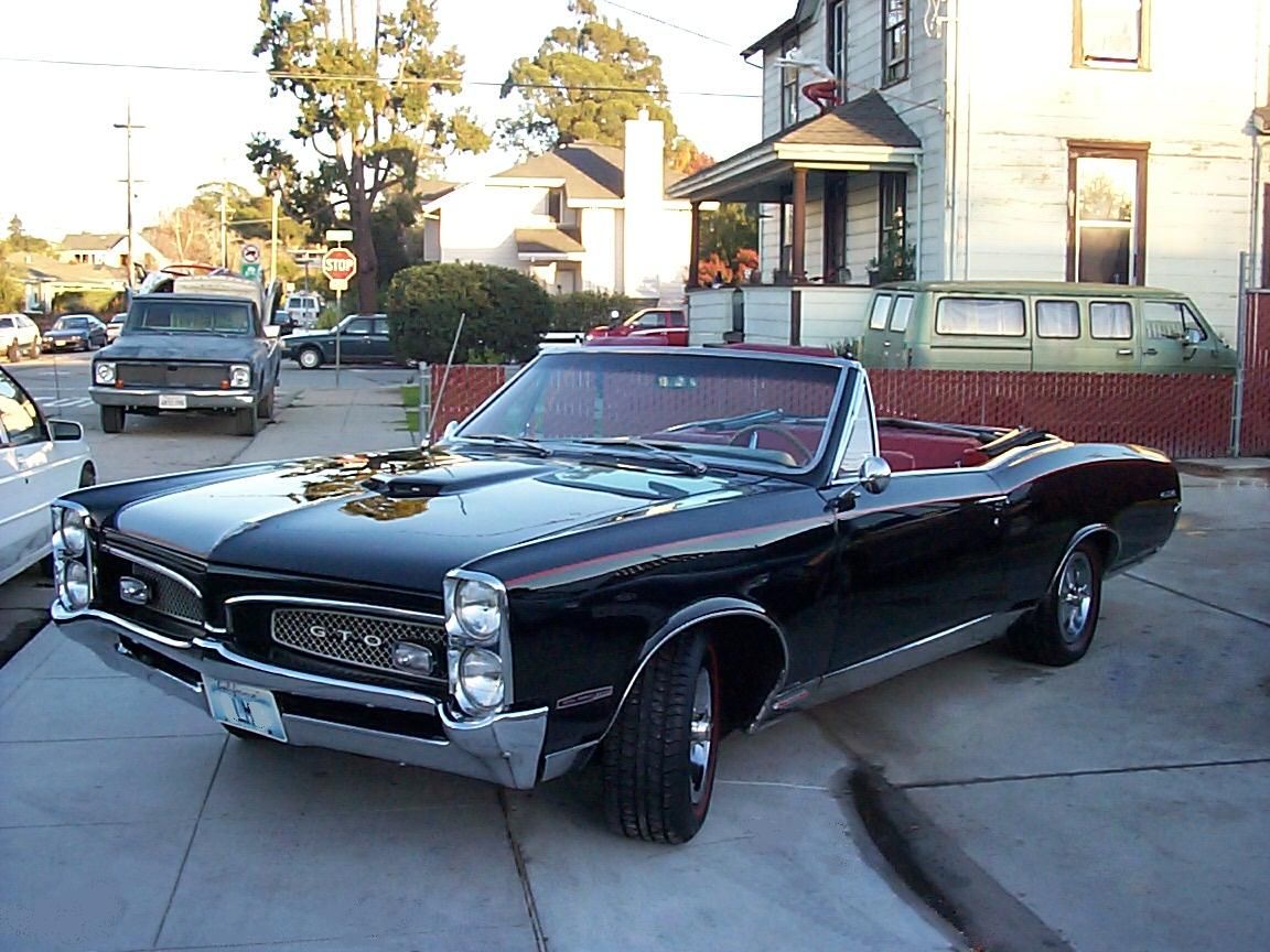 Just up for sale is this outstanding Black with Black Top Red Interior 1967 Pontiac GTO Convertible Hurst Equipped Royal Bobcat Tuned 400 Engine 400 turbo transmission, with Power steering, Power brakes, Power top, all in good working order with the original Factory Wood Wheel, looks and runs great!!