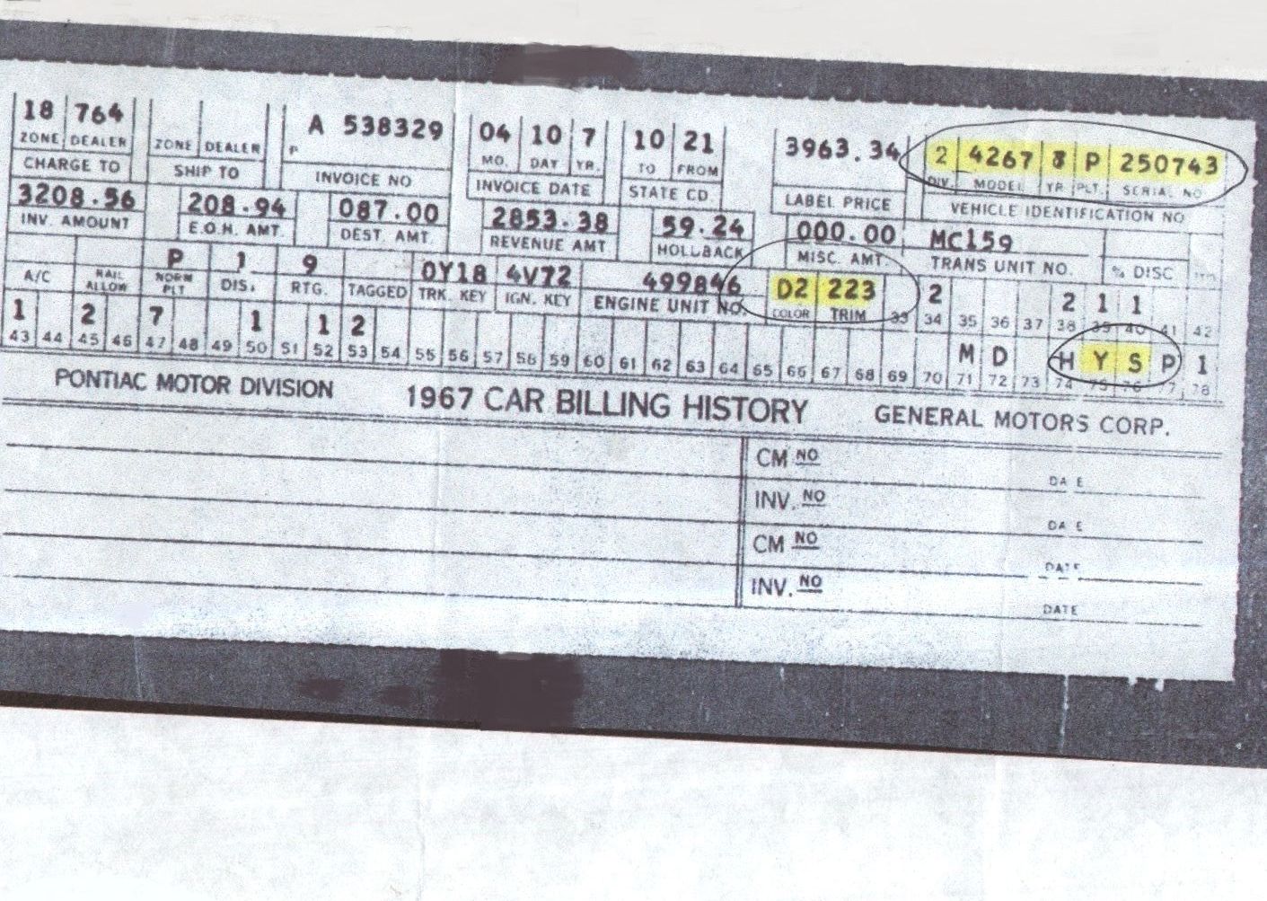 The car is a 1967 Pontiac Convertible GTO PHS documented car Hurst equipped with Hurst Wheels and Shifter.