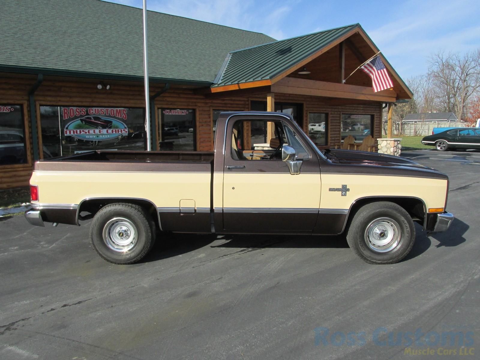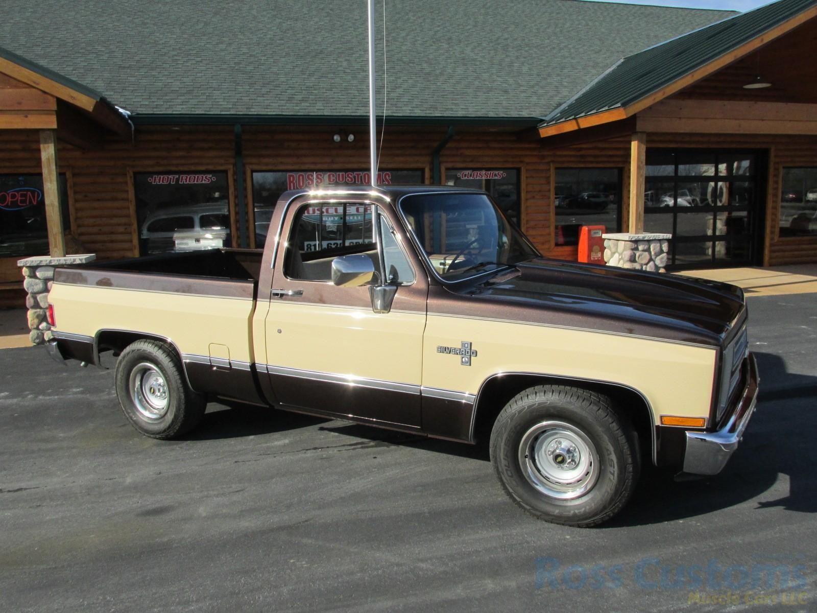 This is an "Absolutely Gorgeous" 85 Shortbox Silverado that has undergone a recent restoration, clean all original panel truck, done in its factory Dark Brown Metallic and Tan 2 tone, basecoat clearcoat, at time of restoration had steel cowl hood added for that cool look, factory pin strip and body side moldings, new tinted windshield and rubber, factory original tinted side glass in excellent condition, rear slider and new rubber, new weather stripping and window felts, new door handles, original grill and headlight bezels have been reconditioned, original side view mirrors in excellent condition, re-chromed front bumper, new wheel well moldings and body side moldings, original tailgate and applique in excellent condition, new rear bumper, factory dual tanks.