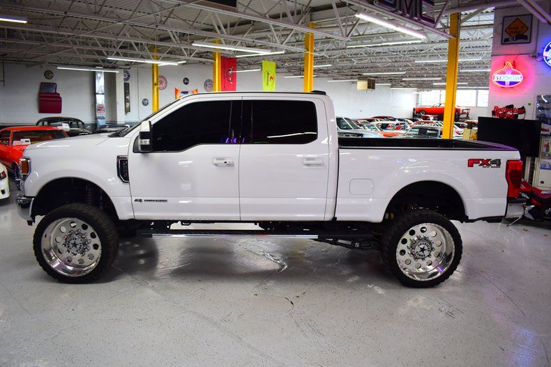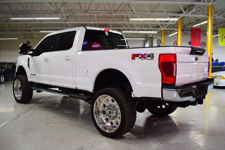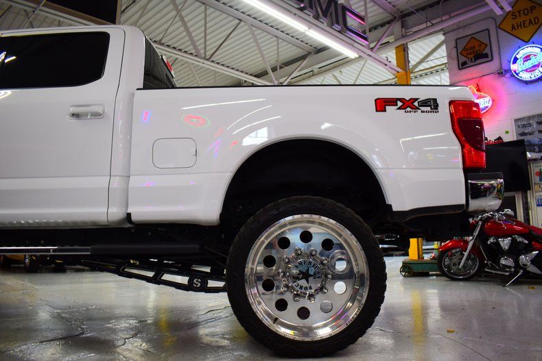 In summary, the 2020 Ford F-250 Lariat Ultimate FX4 is the embodiment of power, performance, and style. With its white exterior, black interior, and the mighty 6.7L Powerstroke engine boasting over 600 horsepower and 1,200+ lb-ft of torque, this truck is an absolute force to be reckoned with. The carefully selected suspension and off-road enhancements, as well as the high-end wheel and tire setup, make this F-250 a masterpiece of both form and function, ready to take on any challenge in its path.