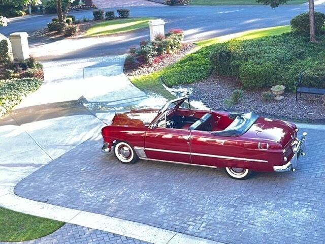 As the first new postwar models offered by Ford Motor Company, the redesigned 1949 passenger-car lineup was as crucial to its makers ongoing success as the pre-war Model A, Model T, and the revolutionary V-8 models of 1932. Breaking from tradition with fresh and modern styling that was lower and wider than before, the new-for-1949 Fords featured envelope styling with fully integrated fenders and a low, full-width grille delineated by neat chrome trim and punctuated by a faux jet intake at the center. Passenger space was good, with the new Fords built upon a new ladder frame offering a useful, yet rational 114-inch wheelbase. Mechanical specifications were updated to match the new styling, with a new wishbone-type front suspension and longitudinal rear springs replacing the former solid front axles and transverse leaf springs. As before, both six-cylinder and V-8 engines were available. A three-speed manual was the sole transmission available for 49, with overdrive optional. Standard and upscale Custom trim levels provided further distinction. Upon their release at New Yorks posh Waldorf-Astoria Hotel, they were the first all-new Ford models in more than a decade. Importantly, their introduction on June 10, 1948 preceded new-car introductions by archrivals Chrysler and General Motors, gaining valuable press coverage and positioning Ford as the automaker to beat in the increasingly expansive postwar era. The 1949 Ford models and their fresh, clean styling drew wide praise and put the warmed-over 1942 styling into the distant past while positioning Ford for the successes yet to come in the 1950s. The 1950 Ford passenger cars appeared little changed from their 1949 model-year counterparts, however numerous welcomed detail updates spurred advertisements heralding 50 improvements for 50. Representing the top of Fords model range, this Outstanding 1950 Southern Estate Classic Ford Custom Deluxe Convertible is the product of a loving Ground Up Award Winning Restoration. Total investment exceeds $70,000. Finished in its original and delightfully appealing shade of Matador Red paint (only available on Convertibles) over a restored two-tone red/black leather interior, Black Convertible Top and a restored fascia and instruments, the dashing Ford is exquisitely detailed inside and out. It comes Highly Optioned including Desirable Enhancements. 3 Speed Manual Transmission 3 on the Tree Highly Desirable Overdrive Deluxe Push Button Stereophonic Radio Magic Air Heating and Defrost System Vent Windows Delux Hood Ornament Cigar Lighter (Unused) Courtesy Lamp Manual Choke Clock (Functional) Backup Lamps Disc Braking System Turn Signal Indicators Amber Fog Lamps Factory Spot Light V-8 Famous Flathead Engine 239 Cubic Inch Displacement 100 Horsepower Dual Exhaust System with Ford Scripted Exhaust Deflectors 6 Volt Electrical System Dual Master Cylinder Highly Detailed Engine Compartment and Undercarriage Wide Whitewall Radial Tires (5) Power Operated Convertible Top Black Haartz Canvas Top with Red Trim Original Glass Rear Windows Black Boot Cover Ford Scripted Dog Dish Hubcaps Chrome Beauty Rings Jamco Front and Rear Sway Bars Gas Shocks Dual Side View Mirrors Chrome Door Edge Trim Door Handle Fingernail Guards Rear Ribbed Fender Skirts Front and Rear Bumper Guards Front and Rear Bumperettes Owner Manual Sales Literature Many Vintage Ford aficionados consider the Custom Deluxe Convertible to be Highly Prized. Of the small number of Custom Deluxe Convertibles produced in 1950, only a limited number remain in this condition and color combination. If you are seeking a Great Sh Box Convertible, you will likely be Most Favorably Impressed with this Magnificent Example. Excellent Throughout. Ready for Show and Tour. Ask $49,950.