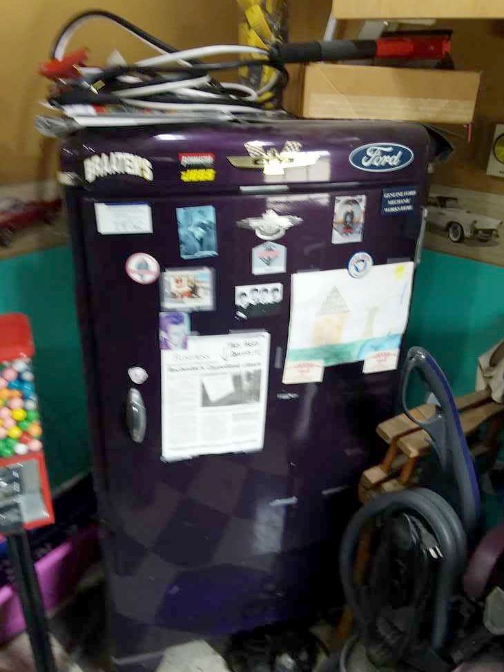 $999Dark PurpleYou are looking at cool old GM fridge. The emblem on door says general Motors Corp. Very cool old fridge! We had Sorenson Appliance in Geneva install